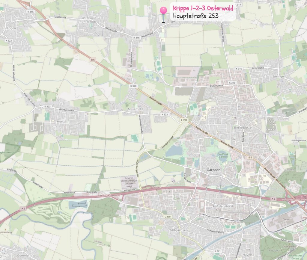 Paritätische Kinderkrippe Osterwald, Hauptstraße 253, 30826 Garbsen, Telefon Kinderkrippe: 05131 – 4526836, Fax: 05131 – 905653